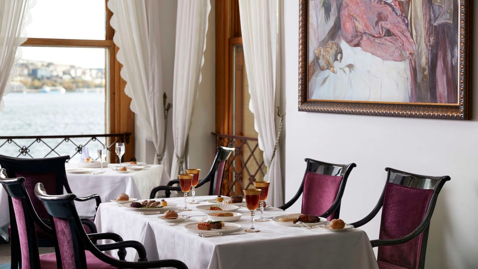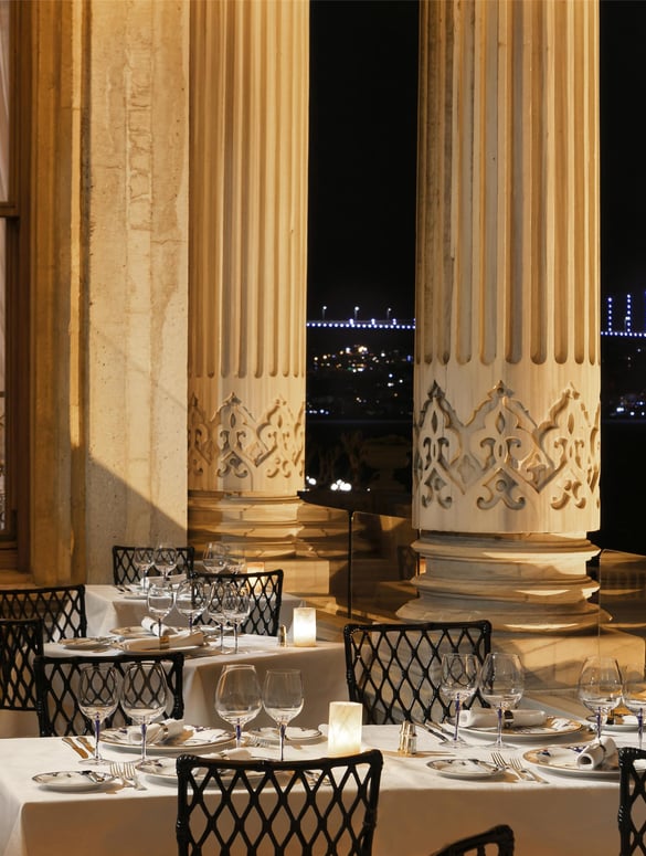 Nestled within the enchanting atmosphere of Çırağan Palace, Tuğra Restaurant offers a world-class gastronomic experience in one of the most beautiful locations. Consistently featured in the Michelin Guide, awarded with “Service Award” for its exceptional service, and honoured with three toques by Gault&Millau in the Excellent Table category, Tuğra is a culinary masterpiece. With its magnificent architecture, high ceilings, floor-to-ceiling Bosphorus views, solid wooden doors, marble columns, and a breathtaking terrace, Tuğra is the most opulent address for Ottoman and Turkish cuisine. Drawing on recipes unearthed from extensive research in palace archives, Tuğra blends traditional flavours with modern touches, creating a delectable menu and delivering an unparalleled dining experience. Recognized by numerous prestigious awards and publications as one of the world's finest restaurants, Tuğra invites you to indulge in an extraordinary feast.